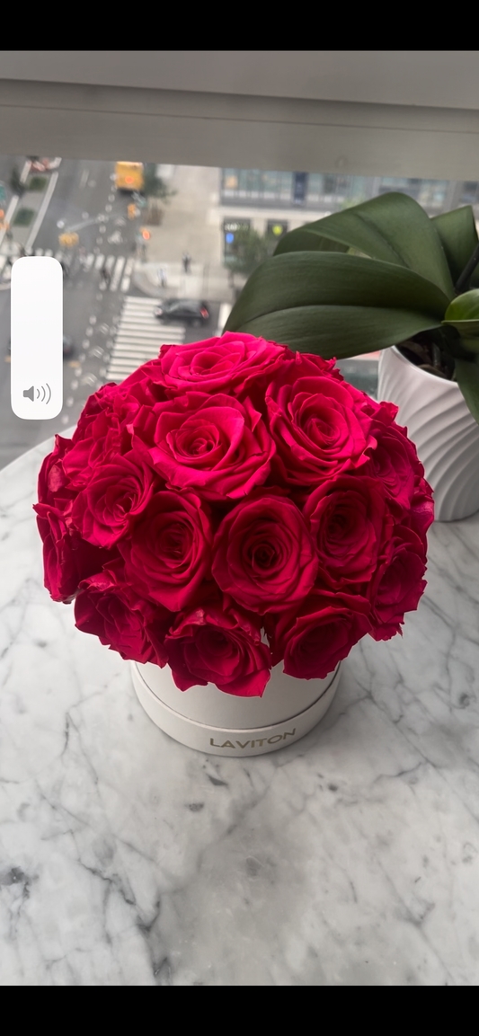 HOT PINK ETERNITY ROSES IN WHITE BOX